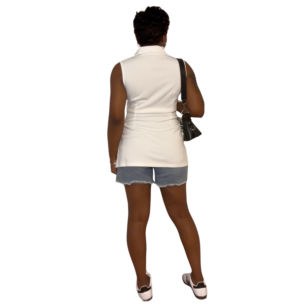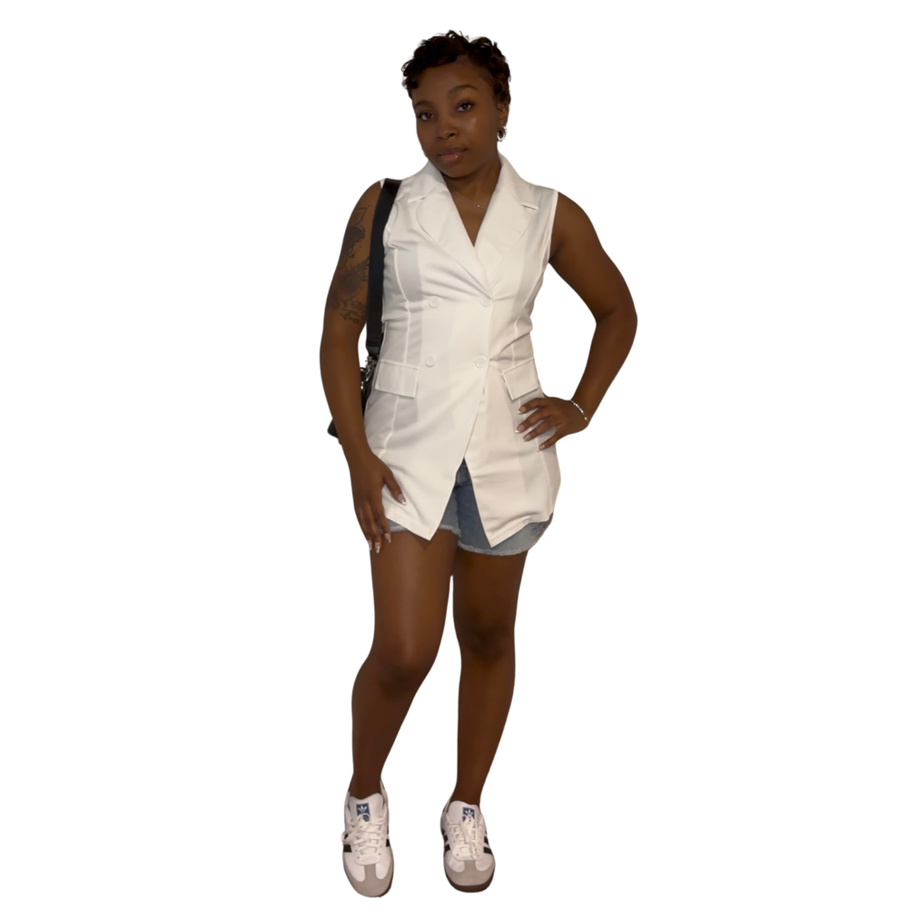 Structured yet feminine, the Elani Blazer Top is your new go-to for when you want to look polished without trying too hard. Designed with a tailored collar and sleek button-up front, this sleeveless blazer brings a fresh twist to classic structure. The soft patchwork texture adds just enough edge, making it easy to style for workdays, date nights, or anything in between.